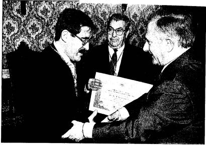 Ruiz Vélez recibe las felicitaciones de Alberto Ibáñez, director de la Academia, y de Vicente Orden. ALBERTO RODRIGO |